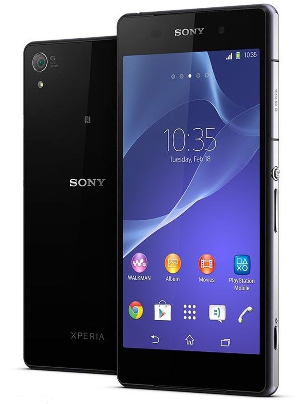 SPECIFICATION  GENERAL 2G Network GSM 850 / 900 / 1800 / 1900  3G Network HSDPA 850 / 900 / 1700 / 1900 / 2100  4G Network LTE 700/800/850/900/1700/1800/1900/2100/2600     SIM Micro-SIM Announced 2014, February Status Coming soon. Exp. release 2014, March BODY Dimensions 146.8 x 73.3 x 8.2 mm (5.78 x 2.89 x 0.32 in) Weight 163 g (5.75 oz)   - IP58 certified - dust proof and water resistant over 1 meter and 30 minutes DISPLAY Type IPS LCD capacitive touchscreen, 16M colors Size 1080 x 1920 pixels, 5.2 inches (~424 ppi pixel density) Multitouch Yes, up to 10 fingers Protection Shatter proof and scratch-resistant glass   - Triluminos display - X-Reality Engine SOUND Alert types Vibration; MP3 ringtones Loudspeaker Yes, with stereo speakers 3.5mm jack Yes MEMORY Card slot microSD, up to 64 GB Internal 16 GB, 3 GB RAM DATA GPRS Up to 107 kbps EDGE Up to 296 kbps Speed HSDPA, 42 Mbps; HSUPA, 5.8 Mbps; LTE, Cat4, 50 Mbps UL, 150 Mbps DL WLAN Wi-Fi 802.11 a/b/g/n/ac, Wi-Fi Direct, DLNA, Wi-Fi hotspot Bluetooth Yes, v4.0 with A2DP NFC Yes USB Yes, microUSB v2.0 (MHL 3), USB On-the-go, USB Host CAMERA Primary 20.7 MP, autofocus, LED flash Features 1/2.3'' sensor size, geo-tagging, touch focus, face detection, image stabilization, HDR, panorama Video Yes, 2160p@30fps, 1080p@60fps, 720p@120fps, video stabilization, HDR Secondary Yes, 2.2 MP, 1080p@30fps FEATURES OS Android OS, v4.4.2 (KitKat) Chipset Qualcomm MSM8974AB Snapdragon 801 CPU Quad-core 2.3 GHz Krait 400 GPU Adreno 330 Sensors Accelerometer, gyro, proximity, compass, barometer Messaging SMS (threaded view), MMS, Email, IM, Push Email Browser HTML5 Radio FM radio with RDS GPS Yes, with A-GPS support and GLONASS Java Yes, via Java MIDP emulator Colors Black, White, Purple (D6502, D6503) / Black, White   BATTERY   Non-removable Li-Ion 3200 mAh battery
